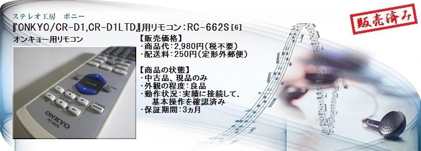 『ONKYO/CR-D1,CR-D1LTD』用 リモコン, 良品 〓 RC-662S |