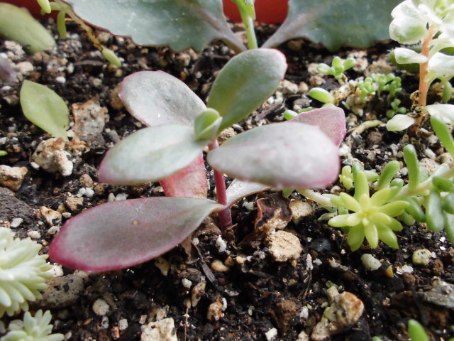 | (22.11.06,メルカリ*)比較的早く発根する(短日で葉が広がってくる)。根元から子株が沢山。 [原]ヨーロッパ[成]枝分かれしながら上に伸びる[暑]比較的丈夫[寒]霜OK[増]挿し芽[葉]難[高][速]早い[大]5cm[花][色][紅] |