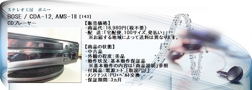 2001年に「AMS-1」のモデル・チェンジ版として発売された「AMS-1Ⅱ」向けのコンパクトCDプレーヤー「CDA-12」です。定価は、アンプとスピーカーのシステム価格で99,800円です。本モデルには、ブラック、ダーク・グリーン、ダーク・ブルーがあり、本品はブラックと思われます。