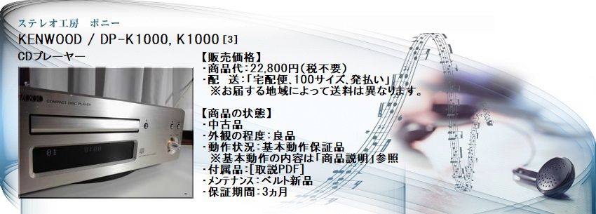 2007年に、ケンウッドから発売されました「K1000シリーズ」向けプレーヤー「DP-K1000」になります。定価は39,000円(税抜)でした。背面に「2009年製」のシールが貼ってあります。