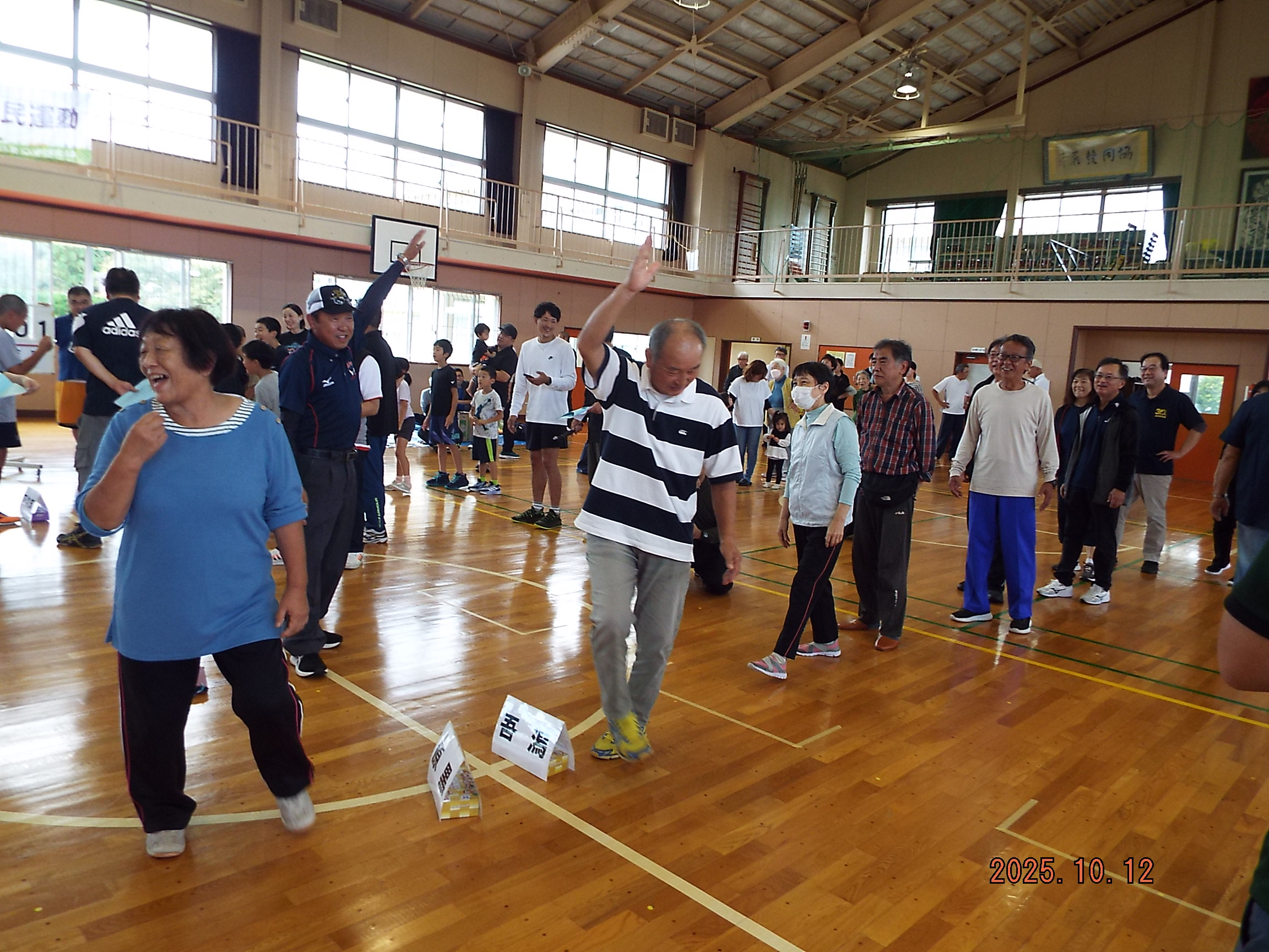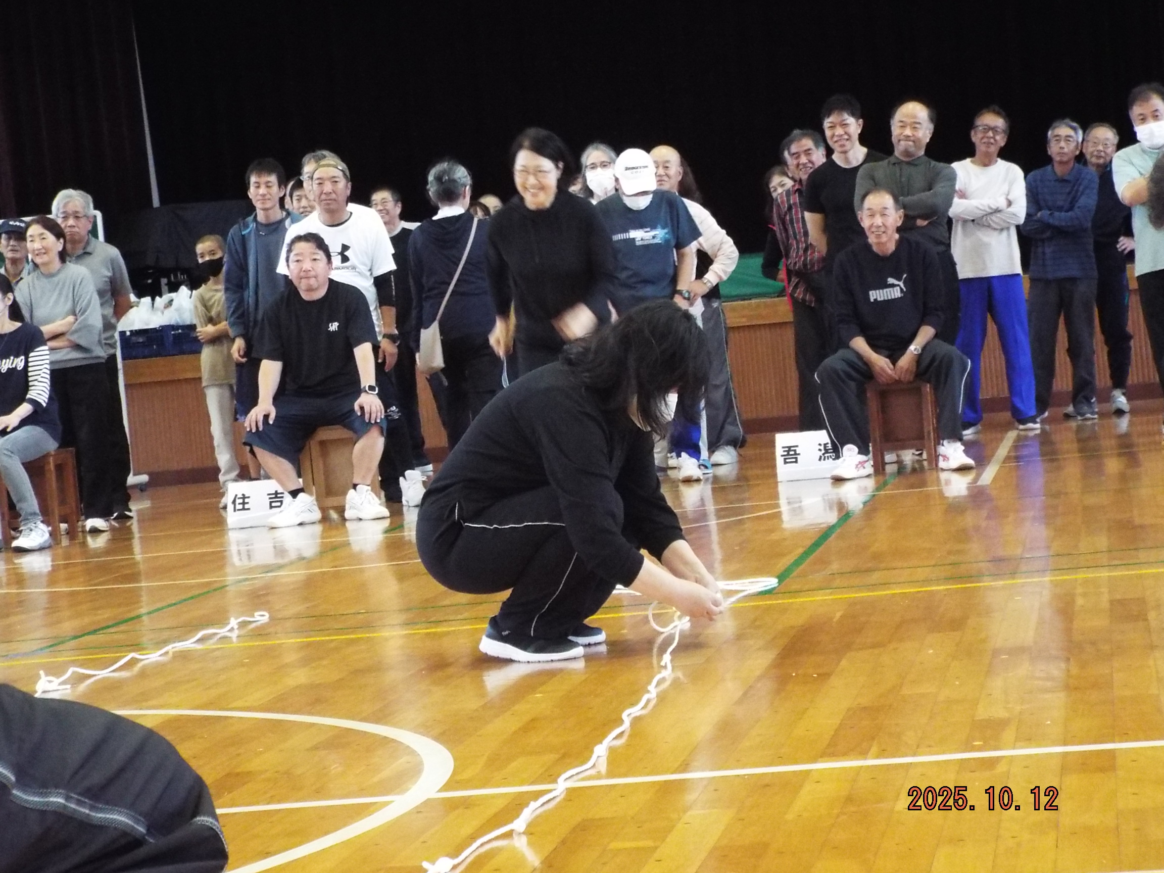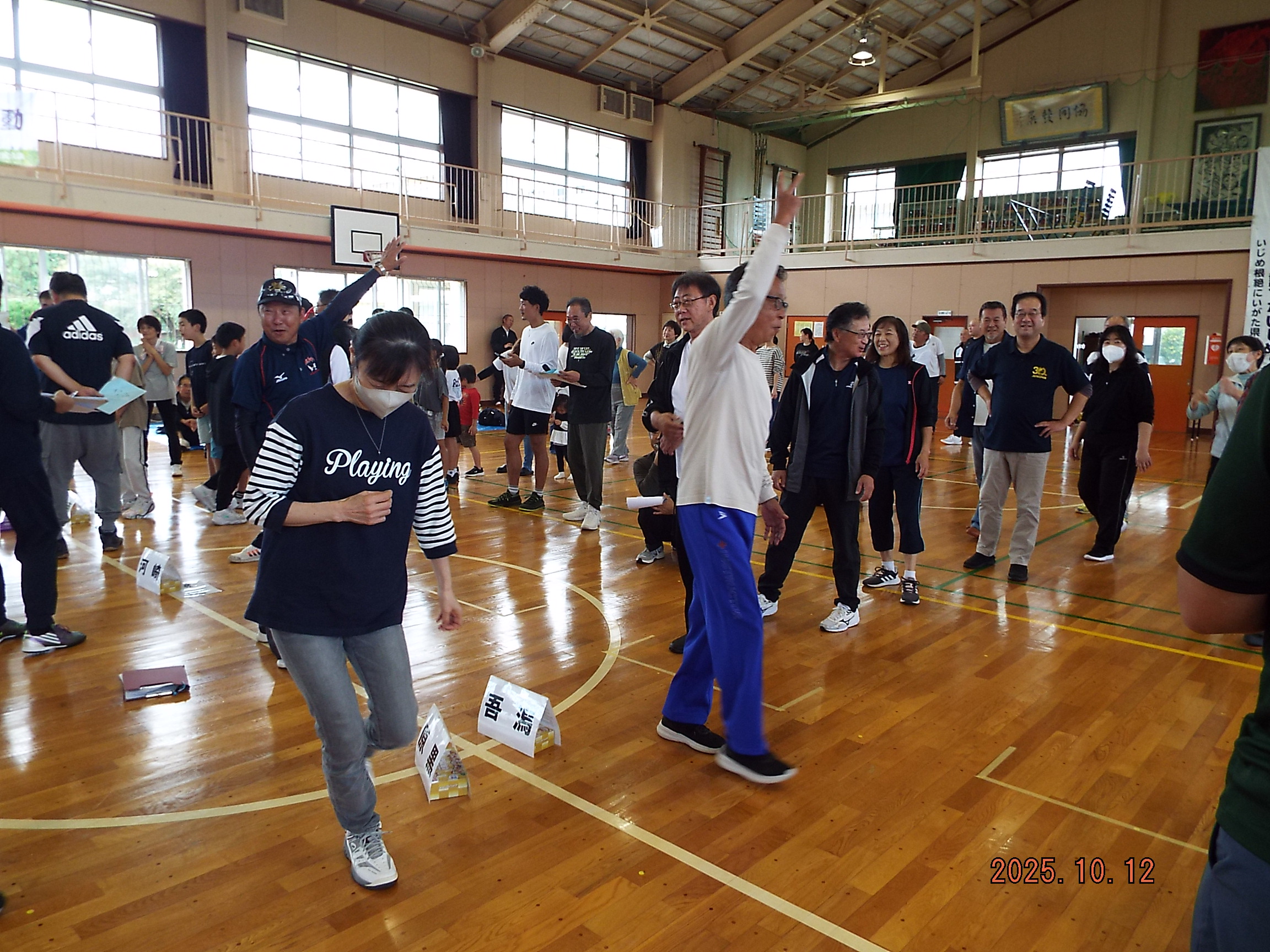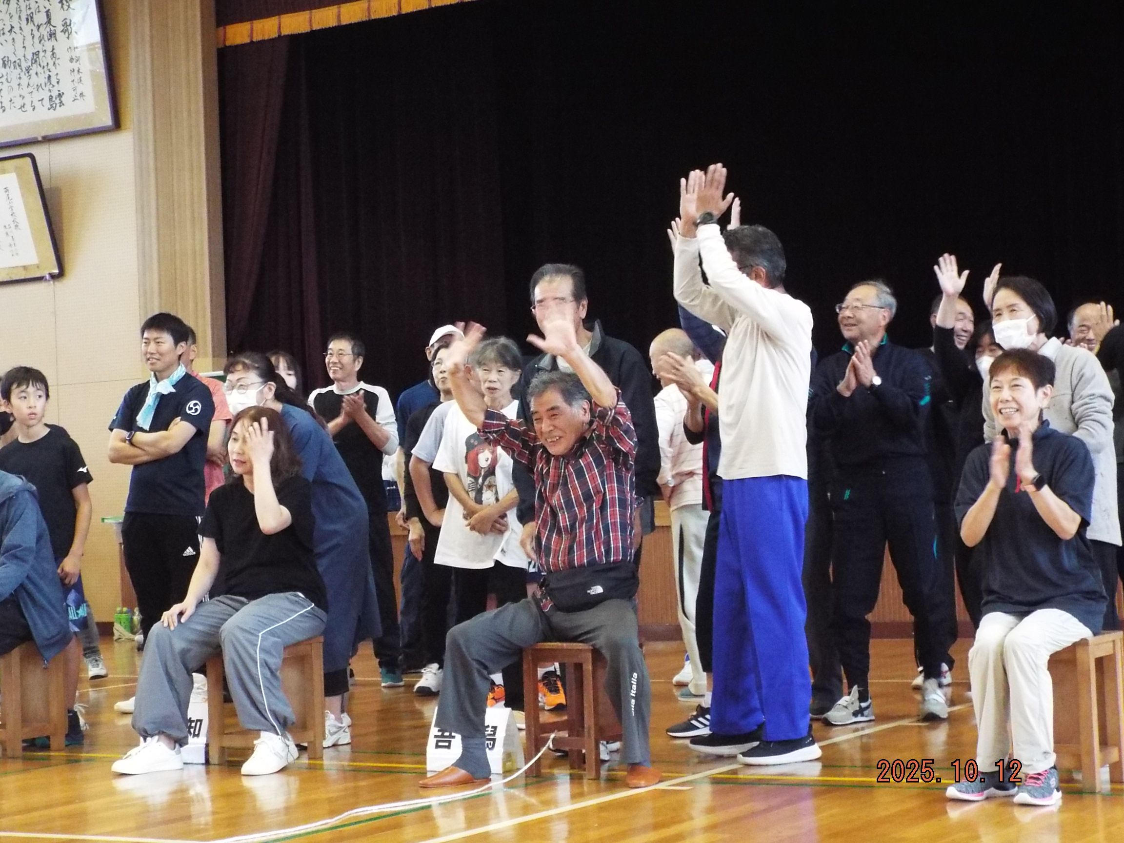 | 2025年10月12日『河崎地区スポーツ交流会』於:河崎小学校体育館 本大会には、吾潟の他に、原黒、住吉、河崎、下久知が参加した。 ※大会の趣旨から総合得点の発表はなかったが手持ち集計では吾潟が優勝した♪ |