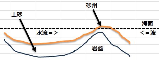 3万年前:吾潟地層から推測すれば、まだ海の底にある。